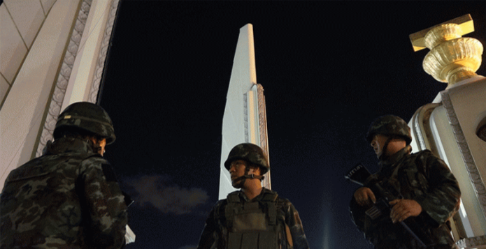 2014 - On the second day of the meetingset up by the army in order to come to a political common ground, there was serious disagreements among groups of protestors, mainly between; People’s Democratic Reform Committee (PDRC) and United Front of Democracy Against Dictatorship (UDD). General Prayut Chan-o-cha decided to leave, and at 17:07 on the same day, he and his force (known as “National Council of Peace and Order” or NCPO) staged a coup, and enacted the Martial Law. **All television channels (except one channel; The Royal Thai Army Radio and Television) and political demonstrations were cut off. **The Constitution and Cabinet were revoked. Moreover, in order to prevent the opposition to NCPO, online news and social media have been regularly censored. Hundreds of Thai citizens have been summoned to “fix their attitudes” if they have showed a sign of disapproval of the junta.